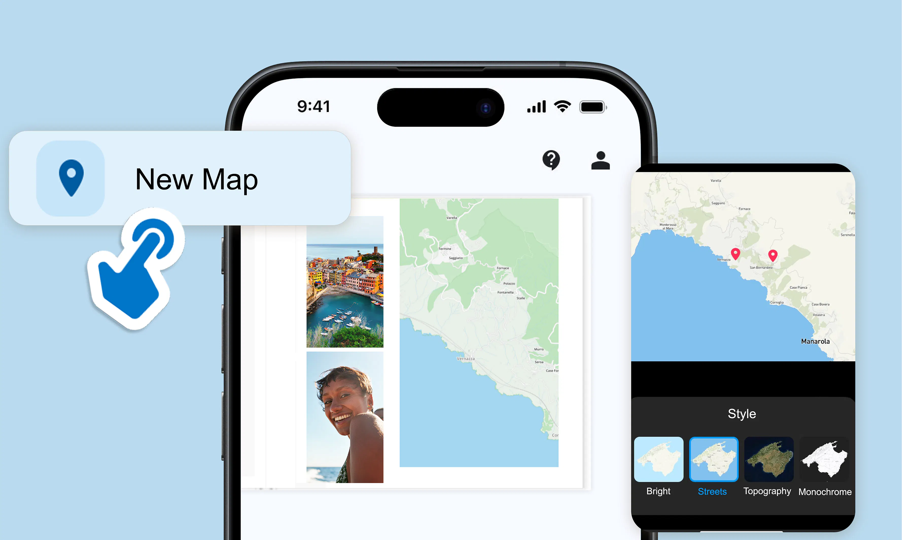 Jednoduše přidej do své fotoknihy Pixum mapu s trasou i všemi zastávkami. Mapu si můžeš kreativně upravit pomocí stylů textu a klipartů – přesně podle sebe.